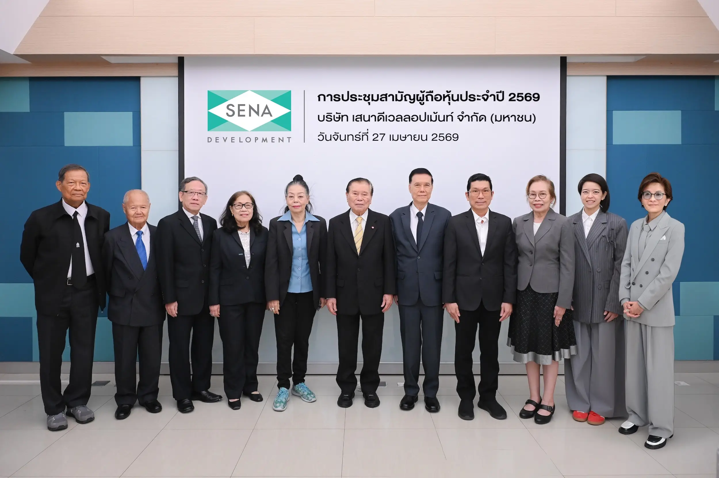 บริษัท เสนาดีเวลลอปเม้นท์ จำกัด (มหาชน) หรือ SENA จัดการประชุมสามัญผู้ถือหุ้นประจำปี 2569 ผ่านระบบสื่ออิเล็กทรอนิกส์ (E-AGM) ณ อาคารธัญลักษณ์ภาคย์ โดยมี นายวิเชียร รัตนะพีระพงศ์ ประธานกรรมการบริษัทและกรรมการอิสระ, ศาสตราจารย์ไชยยศ เหมะรัชตะ ประธานกรรมการตรวจสอบและกรรมการอิสระ และ ผศ.ดร.เกษรา ธัญลักษณ์ภาคย์ กรรมการและกรรมการผู้จัดการ พร้อมด้วยคณะกรรมการบริษัท โดยที่ประชุมได้รับทราบผลการดำเนินงานปี 2568 ซึ่งแม้ภาวะตลาดยังคงเผชิญแรงกดดันจากเศรษฐกิจ แต่บริษัทยังคงสามารถทำกำไรได้อย่างต่อเนื่อง สะท้อนถึงประสิทธิภาพในการบริหารต้นทุนและความแข็งแกร่งของโครงสร้างธุรกิจในระยะยาว